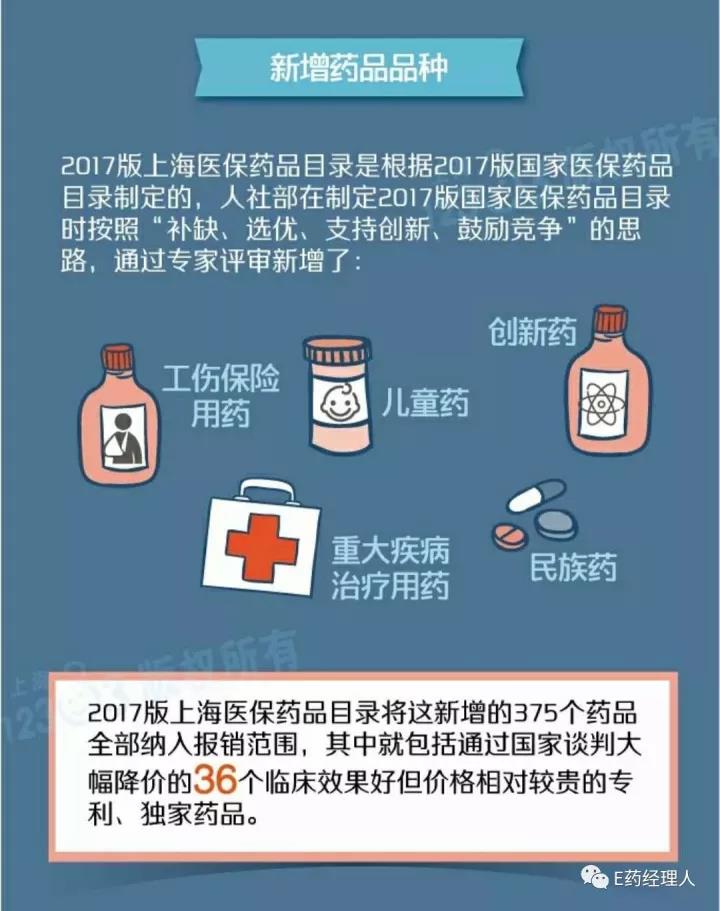 市人社局今天發布,本市2017年版基本醫療保險、工傷保險和生育保險藥品目錄將于明日起正式執行。新版《上海醫保藥品目錄》將《國家醫保藥品目錄》新增的375個藥品全部列入報銷范圍,特別增加了部分重大疾病治療藥物,包括通過談判大幅降價的36個國家談判藥品。同時,原上海醫保藥品目錄中的品種繼續保留。