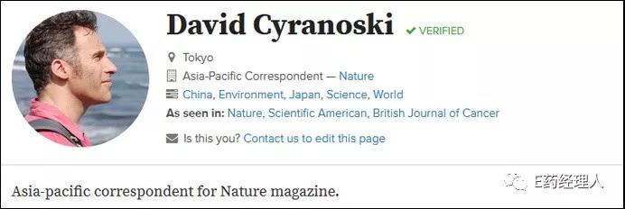 上文作者系《自然》雜志亞太地區記者薩瑞諾斯基(David Cyranoski),他2000年起在該雜志擔任亞太地區記者工作至今,2013年前常駐東京,目前常駐上海,特別關注干細胞方面的研究。在2000年之前,薩瑞諾斯基在日本工作數年,在半導體公司做過翻譯工作,也做過外國交換生的歷史老師。