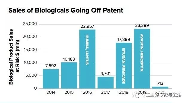 市場規(guī)模的大小和原研藥的專利保護期直接相關。根據(jù)Evaluate的統(tǒng)計,到2020年,過專利保護期的生物藥將近874億美金市場規(guī)模。相當有吸引力的市場。