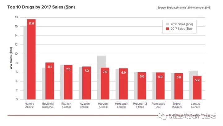 從銷售額來看,全球銷售額排名前十的藥物中,有七名都是生物藥。