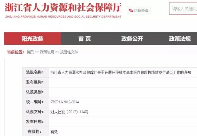 近日,浙江省人社廳下發《關于開展肝移植術基本醫療保險按績效支付試點工作的通知》,決定開展肝移植術基本醫療保險按績效支付試點。