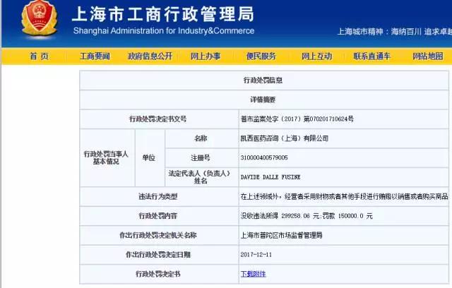 至于處罰理由,是這家公司為提高固爾蘇和倍優諾藥品在中國市場的銷量,在邀請醫院相關醫生開展學術會議的過程中外出旅游。2014-2016 年,當事人邀請各醫院相關科室的醫生開會旅游,共計花費 503859.02 元。當事人組織上述會議共計向凱西集團取得收入 803117.08 元,扣除成本之后違法所得為 299258.06 元。
