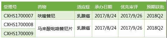鑒于出色的II期臨床數據,恒瑞向CDE提交了吡咯替尼治療乳腺癌的有條件上市申請,該申請在2017/8/24獲得CDE承辦受理,走特殊審批通道,2017/9/26以“具有明顯臨床價值,重大專項”的理由被CDE納入優先審評。目前臨床部分的技術審評已完成,藥學和藥理毒理部分排隊待審評,預計會在2018Q2獲得CFDA批準。