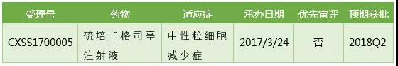 2017/3/24恒瑞以硫培非格司亭注射液的藥品名重新申請19K上市,一度以“與現有治療手段相比具有明顯治療優勢,重大專項”的理由出現在CDE的擬納入優先審評名單中,雖然最終未被納入(見:公示期結束,恒瑞19K未能進入優先審評?),但技術審評(藥學、藥理毒理、臨床)已于2017/10/13完成,正在等待現場核查,順利的話有望在2017Q2獲得CFDA批準。