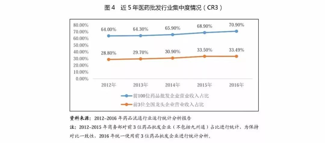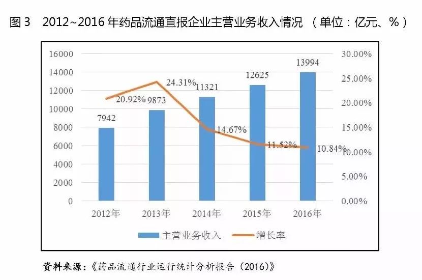 (2)從經營指標來看,醫藥流通企業資產周轉速度普通高于其他行業,其中批發企業存貨周轉速度普遍高于醫藥零售企業,2016年,12家醫藥批發企業的存貨周轉次數中位數為7.76次,而2家醫藥零售企業的存貨周轉次數中位數為3.39次。醫藥零售企業存貨周轉次數明顯小于醫藥批發企業,主要系醫藥批發企業較醫藥零售企業相比,采購和銷售的規模普遍較大,采購和營銷網絡覆蓋比較全面,且普遍具有更加高效及現代化的物流配送體系,由于批發企業所處的產業鏈的環節附加值較低,企業盈利能力普遍較低,只有不斷擴大銷售規模,提高經營效率,才能實現盈利。