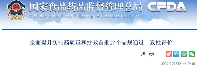 1月4日,CFDA官網掛出《全面提升制藥質量和療效 首批17個品規通過一致性評價》的文章,對一致性評價工作做了簡單但脈絡清晰的總結。