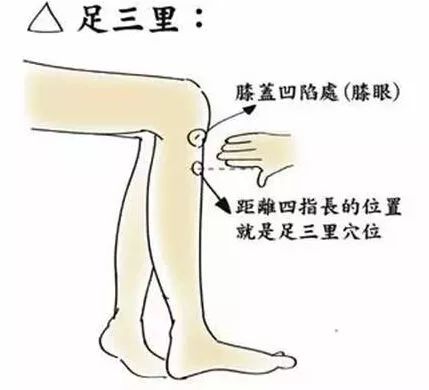 (1)足三里,即外膝眼下方大約孩子四手指并攏的距離,用拇指端按揉穴位,每天50至100次。