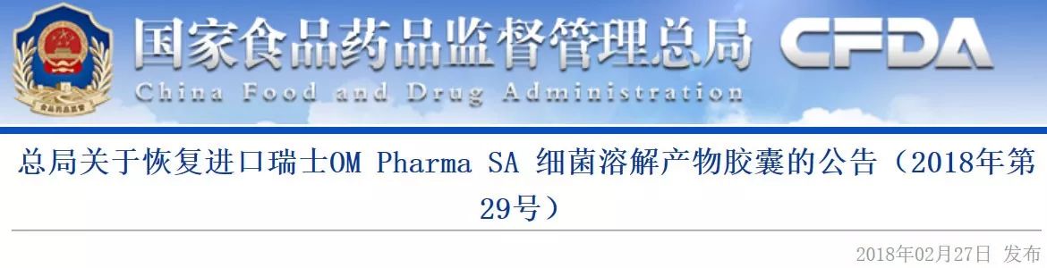 ▍被禁11個月,泛福舒恢復進口 2月27日,國家食藥監總局發布《關于恢復進口瑞士OM Pharma SA 細菌溶解產物膠囊的公告(2018年第29號)》。 就是這個藥(泛福舒),被禁11個月后,即日起恢復進口。 總局表示,在2017年3月20日發布《關于停止進口瑞士OM Pharma SA細菌溶解產物膠囊的公告(2017年第30號)》后,企業經過整改,已完成要求,相關變更的補充申請已通過總局批準,于2017年9月26日獲得《藥品補充申請批件》。 要求各口岸食藥監局,自公告發布之日起恢復瑞士OM Pharma SA細菌溶解物膠囊的進口通關備案。“泛福舒”用于免疫治療。可預防呼吸道的反復感染及慢性支氣管炎急性發作。可作為急性呼吸道感染治療的合并用藥。 ▍還有13個,未解禁 總局公告的邏輯很簡明——海外飛檢查到問題,禁;藥企整改合格后,放行!其實在2017年被總局禁止進口的藥品共有5個。 2017年10月31日,德國B.BraunMelsungen AG中長鏈脂肪乳/氨基酸(16)/葡萄糖(16%)注射液及ω-3魚油中/長鏈脂肪乳注射液——兩個產品,各有3個規格被暫停銷售使用、停止進口; 2017年10月24日,總局公告,禁用一個產自阿根體的神經節苷脂(施捷因);2017年6月2日,巴西的一個神經節苷脂(重塑杰)被禁;2017年3月20日,停止進口瑞士OM Pharma SA的細菌溶解物膠囊(泛福舒)。 再往前追溯,從2013年到2016年,還有9個藥品被禁止進口。 ▍重磅暢銷藥,會不會解禁復出 按照總局的邏輯,以上幾個產品都有恢復進口的可能,其中可能性最大的應該是“重塑杰和施捷因”。 盡管這個產品因為輔助用藥重點監控后,銷量有下滑趨勢,但市場基本量依然可觀。 神經節苷脂是目前國內最暢銷的藥物之一,中康數據顯示,2016年單唾液酸四己糖神經節苷脂鈉連續多年占據TOP100榜首,2016年該品種在等級醫院終端的年銷售額首次突破100億元。