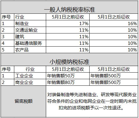 從2018年5月1日起,實(shí)施以下深化增值稅改革征收標(biāo)準(zhǔn)如下: