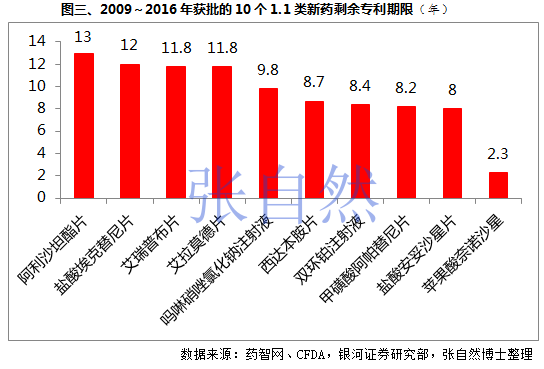 過去,中國新藥審批流程較長,并且缺乏專利延期,導致無法對審批流程過長帶來的損失進行補償,專利有效期大幅縮短,如蘋果酸奈諾沙星的專利期僅剩2.3年(圖三),嚴重影響了醫藥企業研發的積極性和中國新藥的可及性。