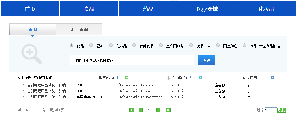 食藥監管總局決定立即暫停進口和銷售意大利Laboratorio Farmaceutico C.T.S.R.L.公司的注射用還原型谷胱甘肽鈉,期間,暫停對該進口品種相關注冊申請的審評審批工作。