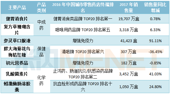 表1:江中藥業主要產品的銷量情況