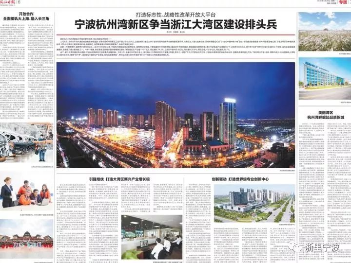 5月28日,浙江日報刊發文章,聚焦寧波杭州灣新區以開放、創新、借勢為動力,以全面接軌上海和長三角為主方向,圍繞“五個夢”,加快建設“國際化產業名城、現代化美麗灣區”,努力成為浙江對外開放的“新門戶”和浙江大灣區建設的排頭兵。