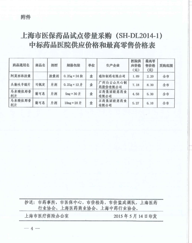 附件二:《關于公布執行上海市醫保藥品試點帶量采購中標結果有關問題的通知》(滬醫保辦〔2015〕28 號)