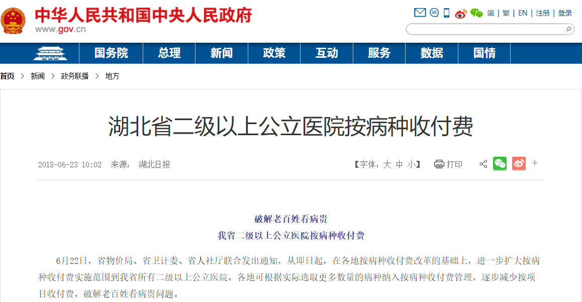 昨日,《湖北日報》刊文:湖北省按病種收付費實施范圍,將從17家重點醫(yī)院,擴展到全省所有二級以上公立醫(yī)院。