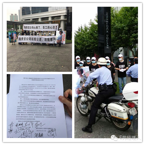 法官在庭上不解地問:“BMS為什么就不能讓員工開開心心地走呢?”月15日上午8點(diǎn)50分,21名“全副武裝”的人士出現(xiàn)在上海施貴寶會(huì)德豐大樓門前。他們頭戴白帽、臉帶口罩,身穿的黑色T恤上印著“抗議裁員”、“施貴寶還我公道”,手持“施貴寶公司還我公道,還我尊嚴(yán)”等字樣的橫幅和“強(qiáng)烈抗議BMS惡意非法解除三期員工”等字樣的易拉寶。這樣場景是否讓人覺得似曾相識(shí)?他們就是在2014年7月至2015年4月被BMS被裁掉的總監(jiān)、大區(qū)經(jīng)理、地區(qū)經(jīng)理們。