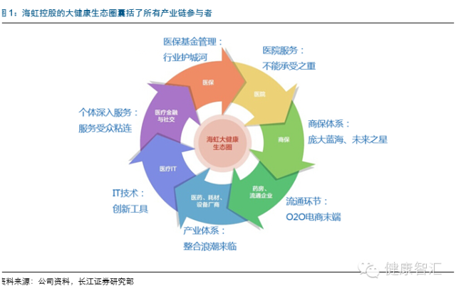 深諳行業游戲規則,得支付者得天下!我們認為,幾乎所有的行業都是“買方市場”,即支付方掌握絕對話語權。在我國醫療支付格局中,醫保占據近60%的份額,是醫院、藥企、患者的命脈所在,具有無可替代的入口價值。基于以上認識,海虹控股2009年即前瞻性引進美國PBM龍頭ESI積累了26年的數據庫,站在巨人的肩膀上掀起了國內醫保控費之風,并深諳行業游戲規則,不計得失地以與醫保局簽訂PBM共建協議的方式,跑馬圈地超過168個地級市而奠定PBM江湖地位,為政府節省、甚至全權管理已宣告吃緊的醫保基金。而醫保局信息中心正是多點分散的醫院HIS數據的最終匯集地,超過100億張的年審單量留存下的海量歷史診療記錄,足以建立起8億參保人口的智慧健康檔案。可以看到,抓住支付入口即掌握了醫療健康產業鏈的核心源頭,因而抓住了健康數據、醫院、醫生資源,進一步向藥企、患者、保險公司輻射均將水到渠成,從而構建多方參與的大健康生態體系。如此來看,海虹控股這盤棋下得足夠大!