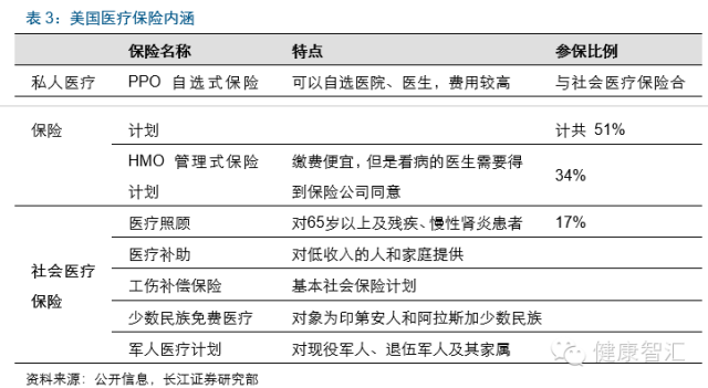 在我國的醫療保險支付格局中,商業保險公司賠付僅占約1.4%,我們參考美國醫療保障覆蓋人群中,商業健康險覆蓋了約63.46%人群、占比醫療費用支出約35%,美國上市醫院來自商業保險的收入約55.2%。可以預見,我國商業健康險亟待發力,面臨十倍以上的成長空間。