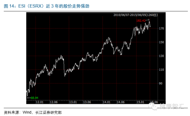 ESI的存在,使得支付方(政府醫保、商業保險)、服務供應方(零售藥店、制藥企業、分銷商)、患者三方關系找到了平衡點,是多方參與的醫療健康產業鏈中不可或缺的一方。公司2014年營業收入高達1008.87億美元,過去10年CAGR約26.08%,(2012年大幅增長系收購競爭對手Medco并于當年合并報表所致),凈利潤更是增長了將近6倍。