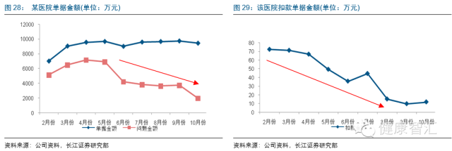 海虹控費審核效率高,試點城市醫保控費成效顯著。以公司的品牌項目“杭州模式”為例,海虹的前置審核速度達到0.7s/單,每月可完成約600萬單據審核,可承載杭州超過95%的醫保覆蓋率巨大工作量,且在部分醫保信息中心人員編制較少的地市,海虹可派遣工作人員深入地方協助和指導。地方醫保智能監管系統上線之后,醫保列支劇增態勢得到有效緩解,正常單據金額從2月份的24853份大幅增加到10月份的82886份、問題單據則從55579份明顯下降到35394份,呈現出明顯的“剪刀差”現象,且審核單據的總金額增速趨于平緩。