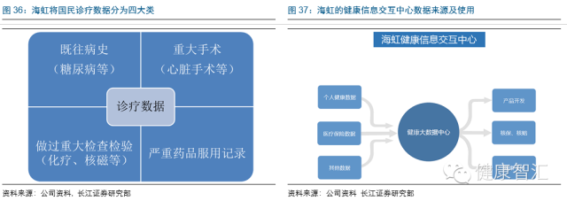 基于以上數據基礎,海虹控股2015年4月29日非公開發行40億元全部用于建設海虹新健康服務平臺,第一部分即建設健康信息交互中心,將以上國民診療健康數據分為個人健康數據、醫療保險數據、重大急癥數據等,最終建立中國8億人口的智慧健康檔案、勾勒國民健康畫像,為后續保險產品設計、核保核賠、健康干預、健康征信、健康金融等業務開展打下了堅實基礎!
