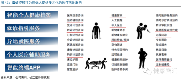另外,海虹控股可為投保人提供“新健康”APP,將醫療、醫保、醫藥三醫聯動相關的服務集成其中,患者可通過新健康APP進行遠程問診、預約醫生、查詢自己的歷史健康檔案、申請異地轉診、購買藥品、健康資訊預訂、家庭康復服務、醫療費用直付等全程健康管理,將大大增強海虹的商業健康險對C端投保人的粘性。