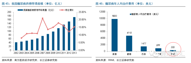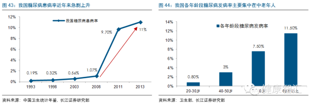 2013年我國確診的糖尿病患者達9840萬人全球居首(占全球四分之一),IGT前期患者更是多達3.16億。且診療存在“50%定律”,即有一半不知已患病,而患者中只有一半被診斷,診斷患者中又只有一半接受治療,接受治療的又只有一半接受良好治療,最后達到預期療效的患者僅