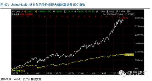 通過分析海虹控股的商業模式,我們認為,海虹的PBM+TPA業務格局對標的應是ESI(快捷藥方)+UnitedHealth(聯合健康)的結合體。聯合健康是一家多元化的健康福利機構,為美國50個州、超過8500萬的人提供健康保險和服務,業務覆蓋范圍超過125個國家,市值突破1120億美元.。