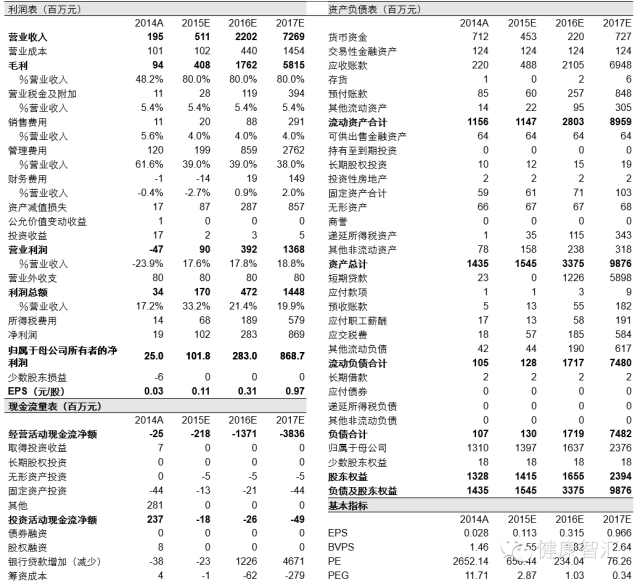 在健康險免稅等政策加碼下,我國商業健康險5年內達到萬億規模已成市場共識。海虹控股的TPA業務瞄準了患病人群特別是慢病人群的商保服務處女地,力圖真正改善我國醫療支付格局。在與約20家保險公司的合作中,海虹基于8億參保人口的健康診療記錄,承攬了產品設計,參保人的預約、掛號、綠色轉診、健康管理、藥品推送、慢病干預等一條龍新健康落地服務,有理由取代保險公司占據部分險種的主場地位!我們認為,其理論市值5年看齊萬億,而2015年正是資源變現元年,預計2015-2017年EPS為0.11、0.32、0.97元,當前股價對應PE分別為650、234、76倍,維持推薦評級!